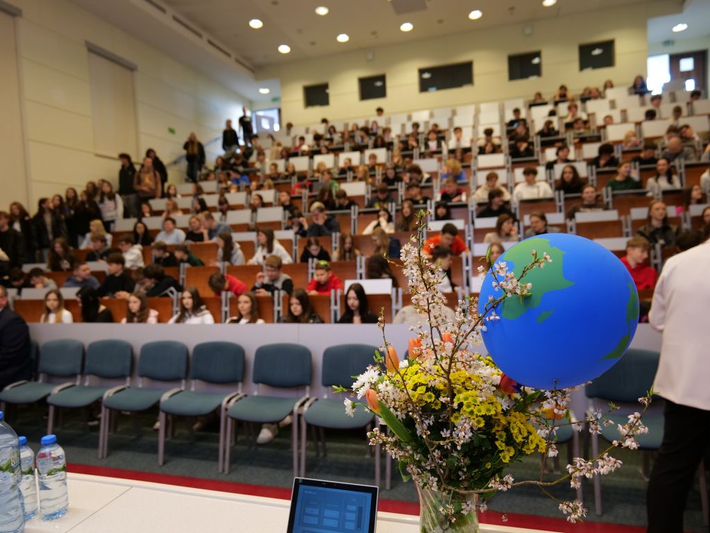 Władze naszej Uczelni reprezentował prof. dr hab. Michał Arabski, prorektor do spraw nauki, który zachęcał młodzież do aktywności naukowej i odkrywania świata.