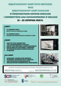 Międzynarodowy Dzień Fizyki Medycznej oraz Międzynarodowy Dzień Radiologii w Świętokrzyskim Centrum Onkologii i Uniwersytecie Jana Kochanowskiego w Kielcach 21 – 22 listopada 2025 r. KIEDY? 21 listopada 2025 r. (Instytut Fizyki UJK, w grupach do 15 osób) 22 listopada 2025 r. (Świętokrzyskie Centrum Onkologii, w grupach do 15 osób) GDZIE? Instytut Fizyki Uniwersytetu Jana Kochanowskiego […]